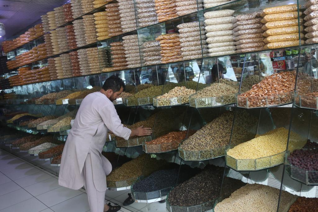 This photo taken on Aug. 8, 2024 shows a shop selling dried fruits and nuts in Kabul, the capital of Afghanistan. (Photo by Saifurahman Safi/Xinhua)