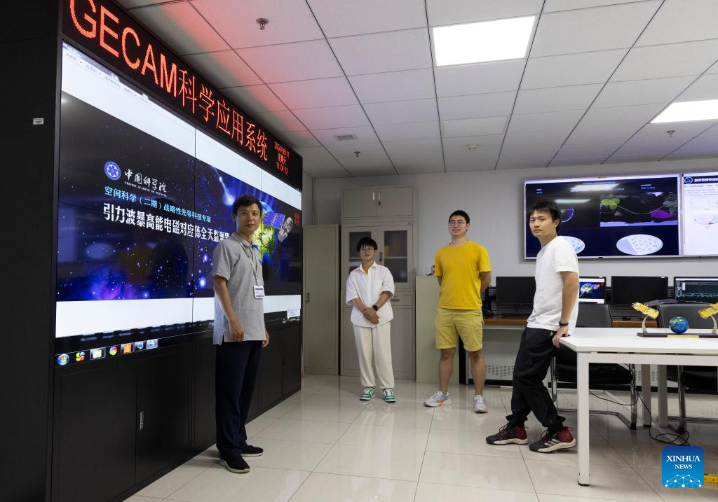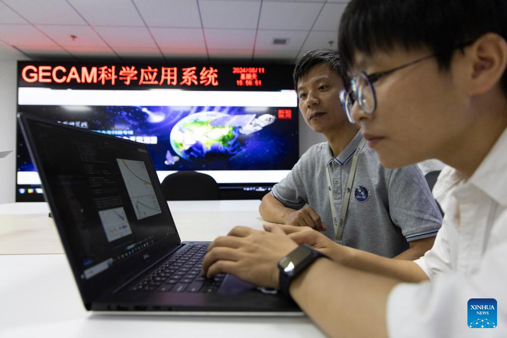Xiong Shaolin checks the running status of the GECAM series space telescopes at the Institute of High Energy Physics (IHEP), Chinese Academy of Sciences, Beijing, capital of China, Aug. 11, 2024.