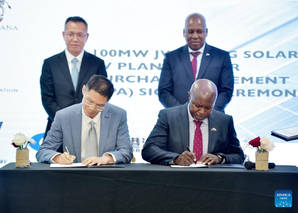GABORONE, Aug. 13 (Xinhua) -- Botswana Power Corporation on Monday signed a power purchase agreement (PPA) with Sinotswana Green Energy, a consortium of Chinese and Botswana companies, to officially launch the southern African country's first 100 MW solar photovoltaic (PV) power station project.