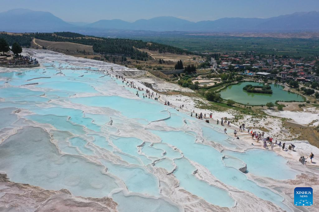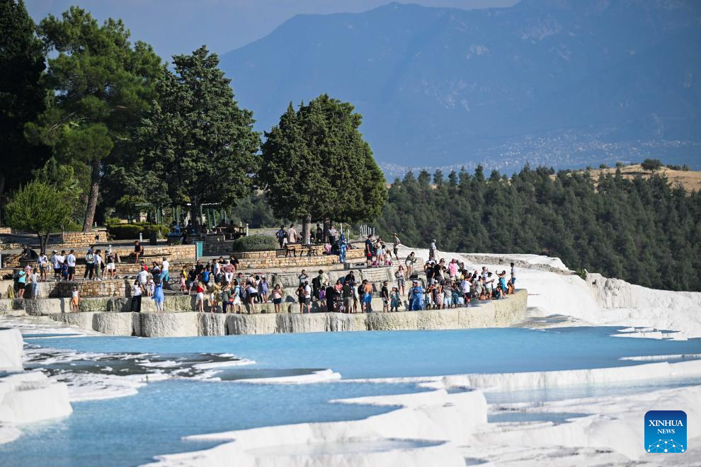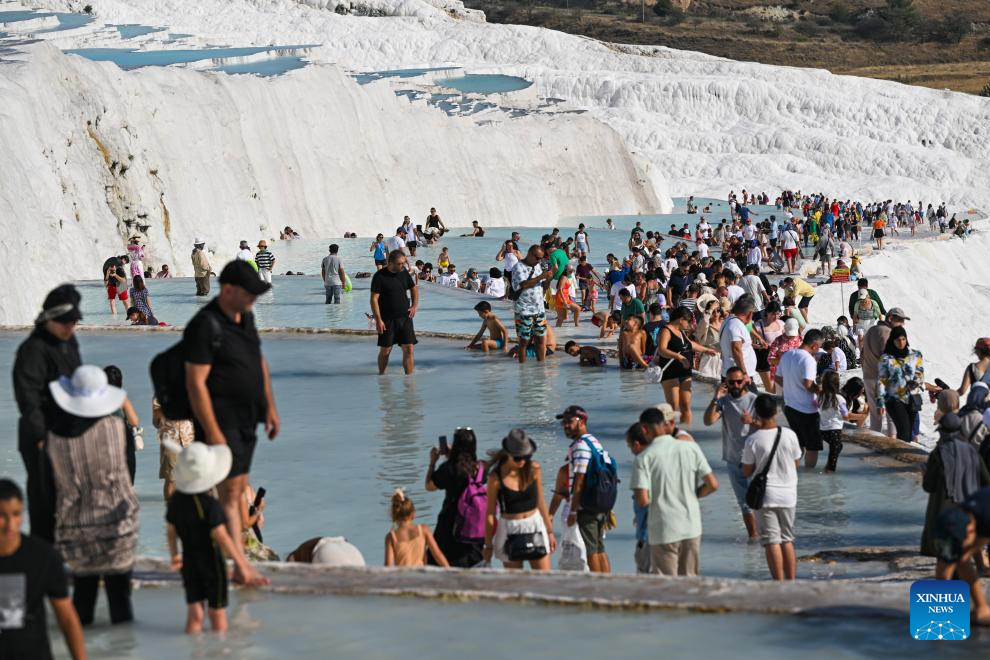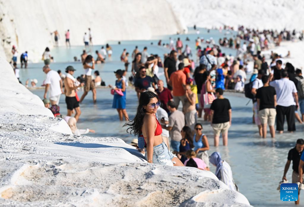Tourists visit Pamukkale in Denizli, Türkiye, Aug. 10, 2024.