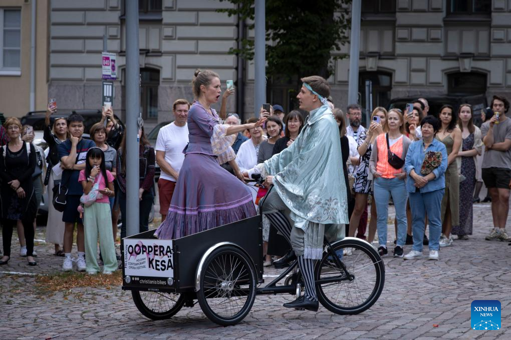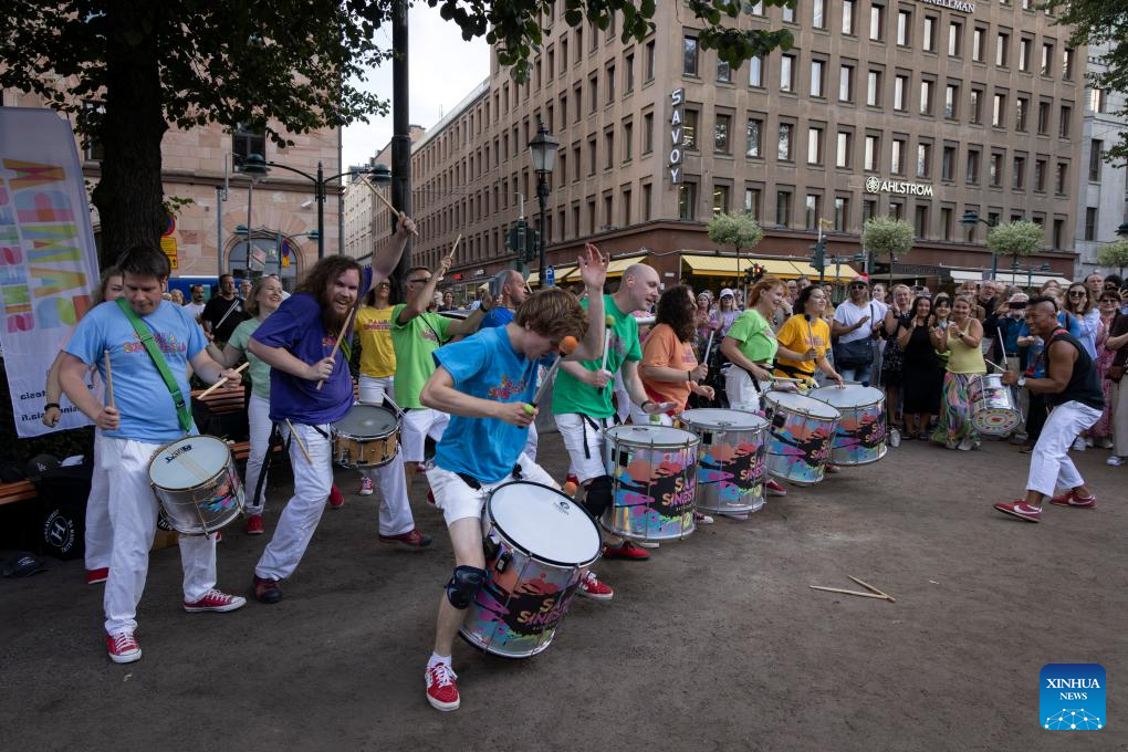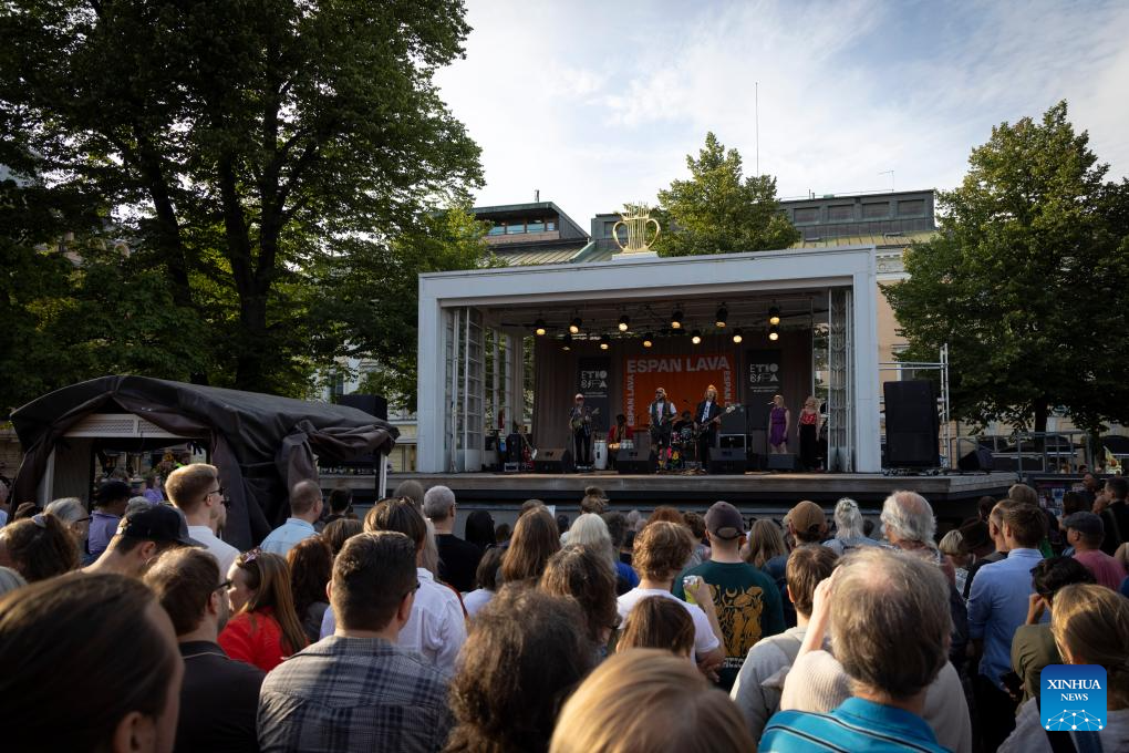 Musicians perform during the Night of the Arts in Helsinki, Finland on Aug. 15, 2024. The Night of the Arts took place on August 15th in Helsinki, celebrating its 35th anniversary this year. (Photo by Matti Matikainen/Xinhua)