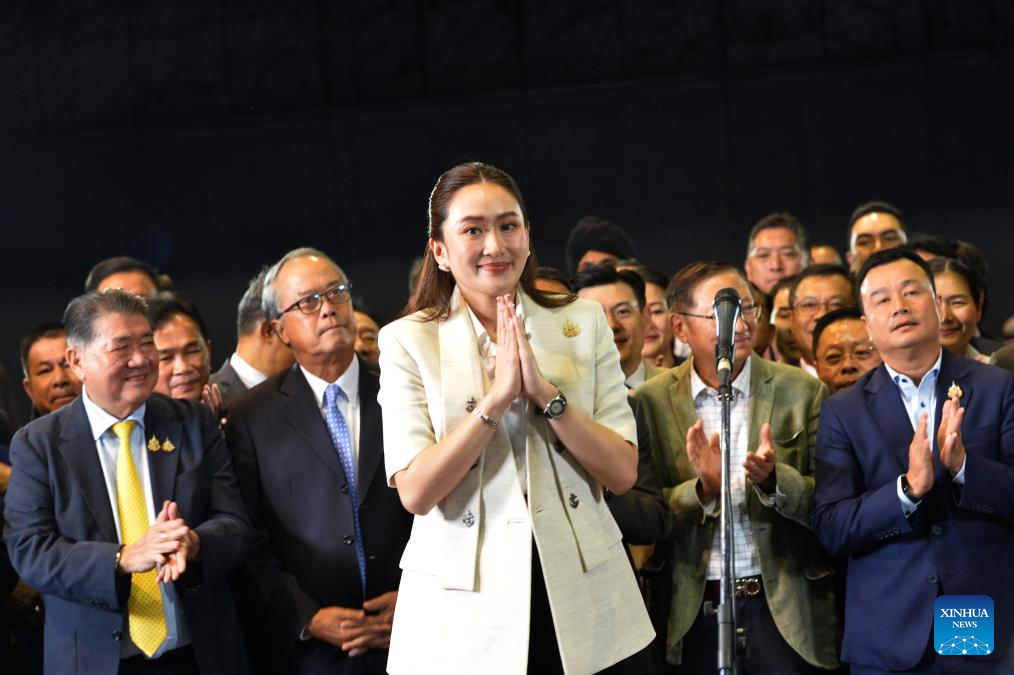 BANGKOK, Aug. 16 (Xinhua) -- Paetongtarn Shinawatra, a candidate backed by Thailand's Pheu Thai-led coalition, was elected as the country's new prime minister on Friday after winning a simple majority in a parliamentary vote.