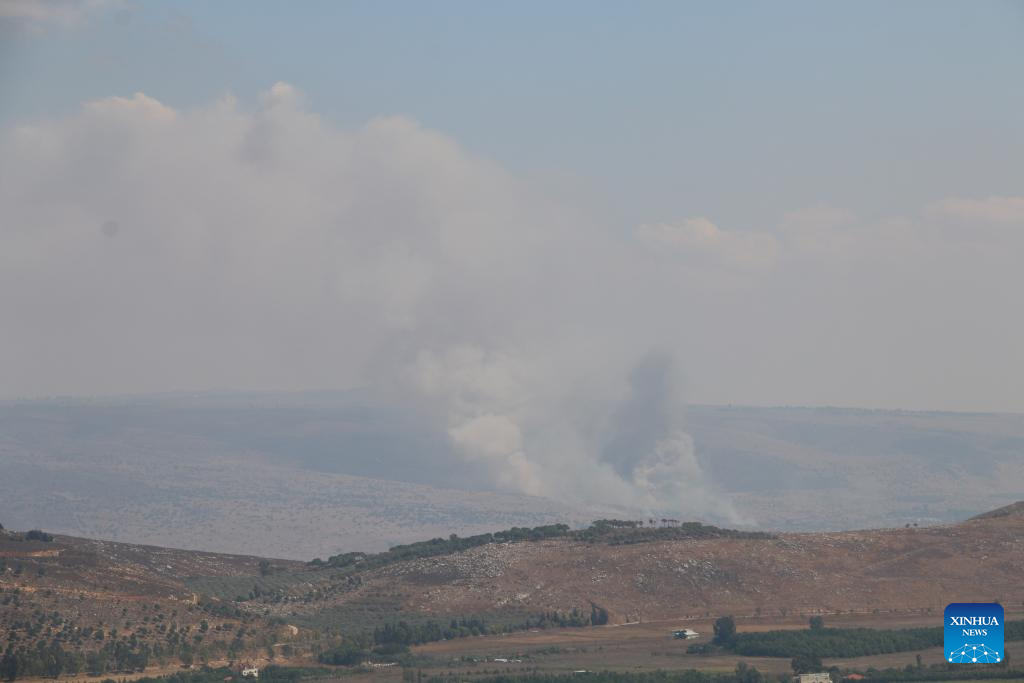 Tensions along the Lebanon-Israel border escalated on Oct. 8, 2023, following a barrage of rockets launched by Hezbollah toward Israel in solidarity with Hamas' attack on Israel the day before. Israel then retaliated by firing heavy artillery toward southeastern Lebanon. (Photo by Taher Abu Hamdan/Xinhua)