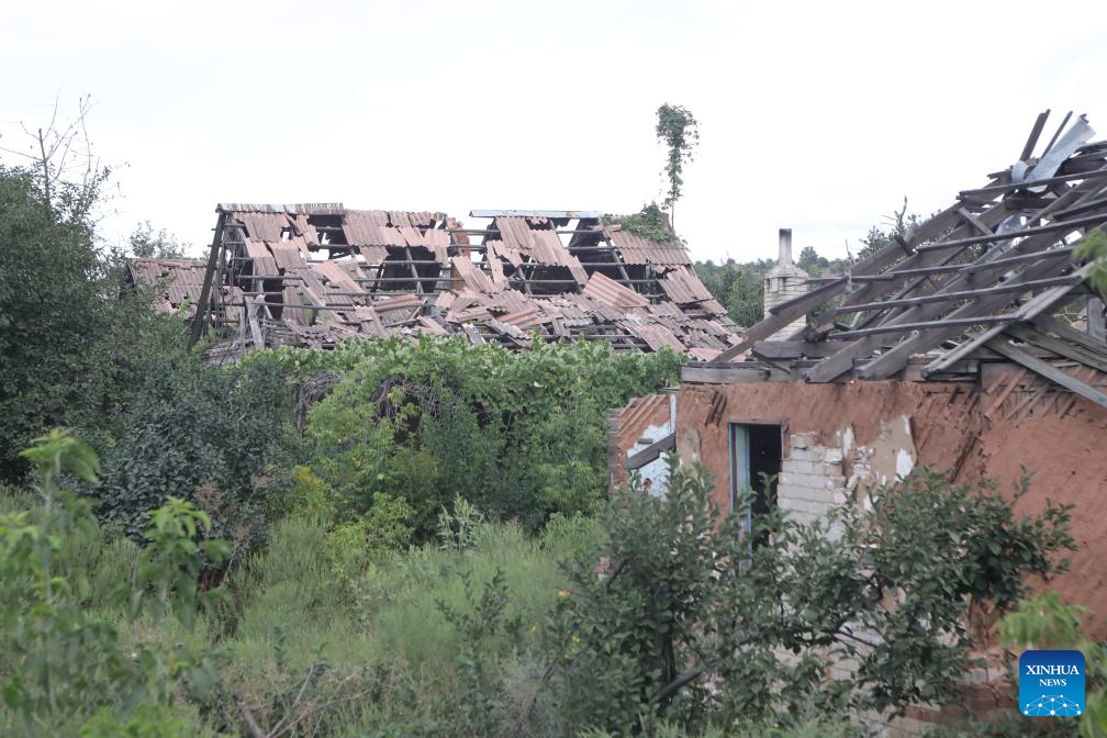 Damaged houses are pictured in Donetsk on Aug. 15, 2024. (Photo by Peter Druk/Xinhua)