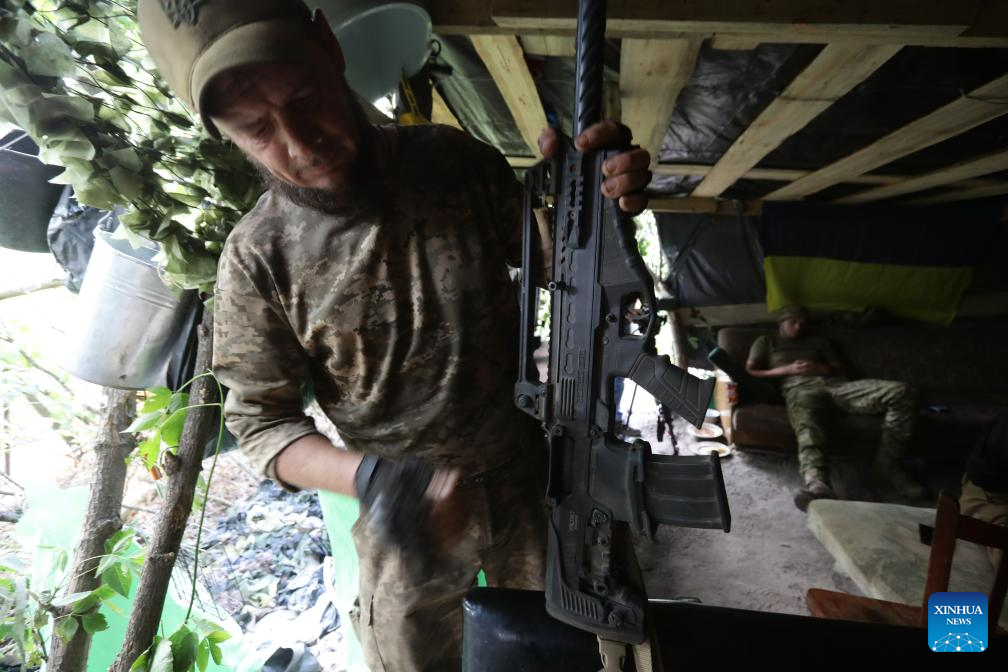 A soldier of the motorized rifle battalion of the 93rd brigade rests in the dugout in Donetsk on Aug. 15, 2024. (Photo by Peter Druk/Xinhua)