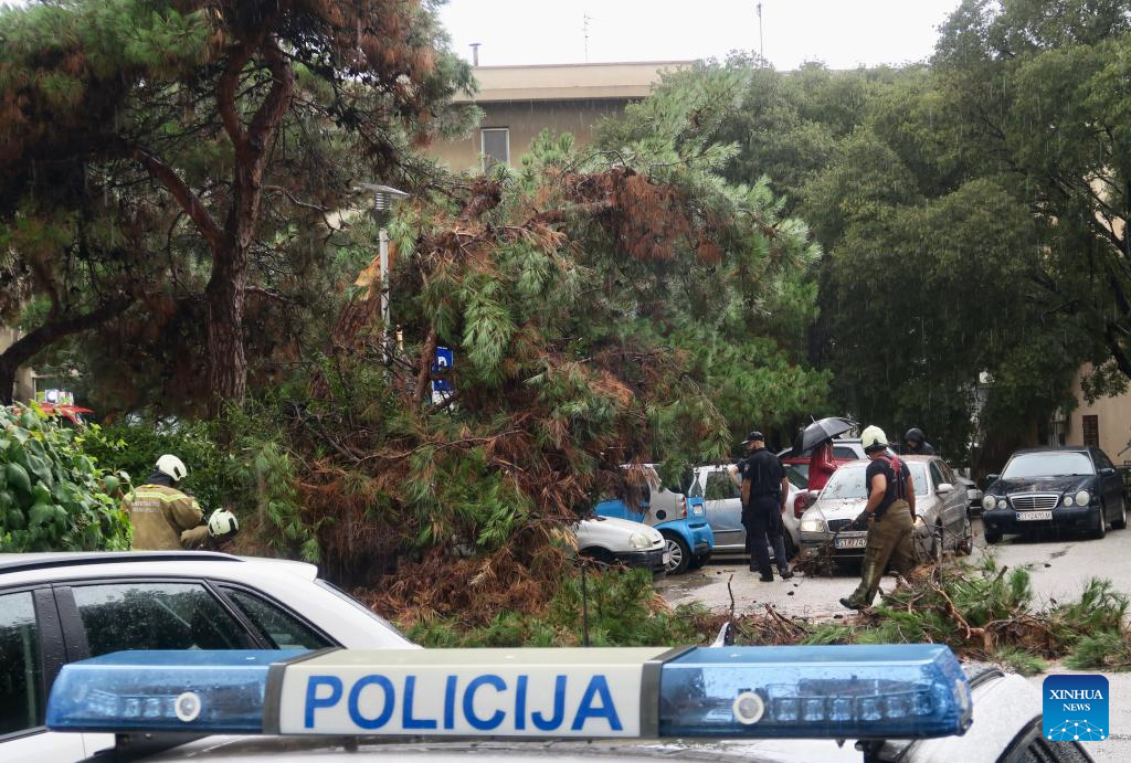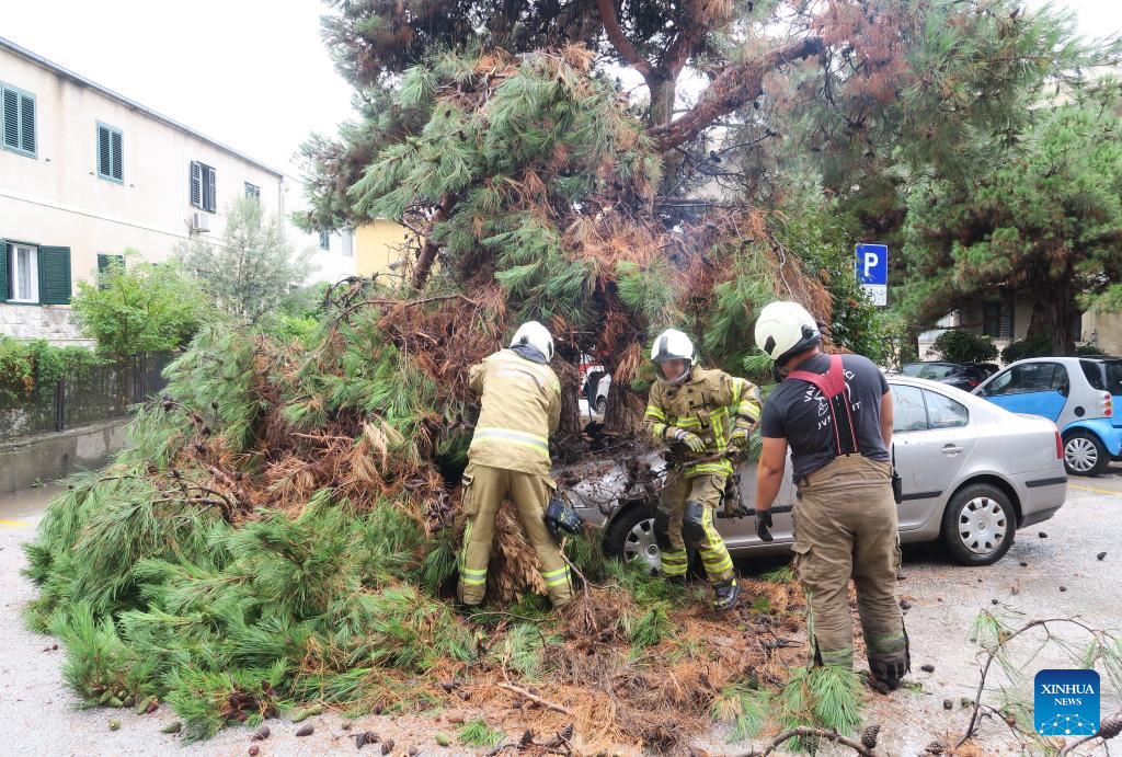 Firefighters clear debris after a storm in Split, Croatia, on Aug. 19, 2024. (Ivo Cagalj/PIXSELL via Xinhua)
