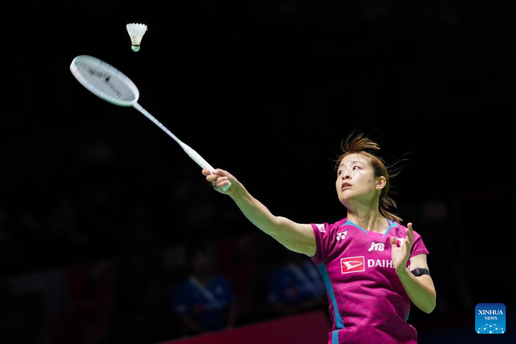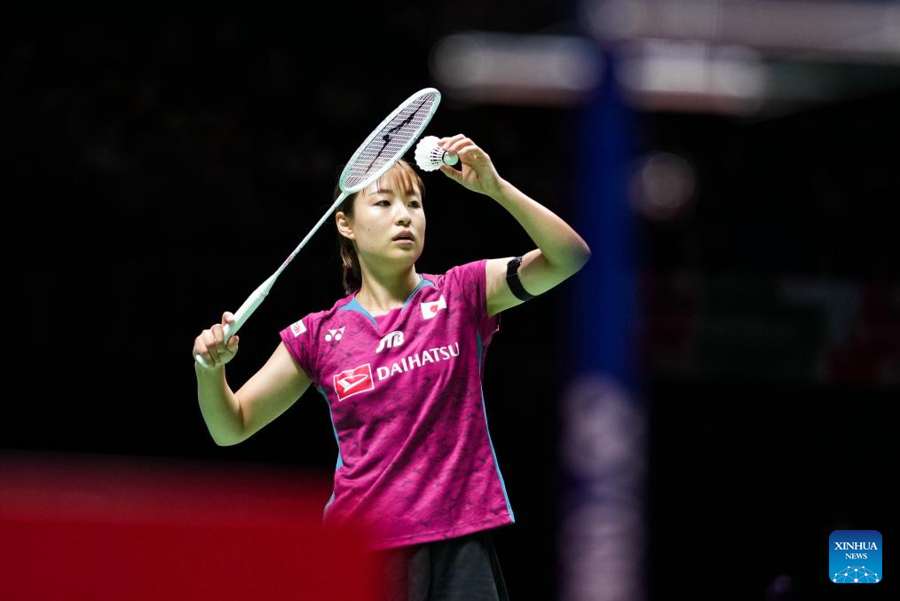 Okuhara Nozomi of Japan competes during the women's singles round of 32 match against Lauren Lam of the United States at the Japan Badminton Open 2024 in Yokohama, Japan, on Aug. 20, 2024. (Xinhua/Zhang Xiaoyu)
