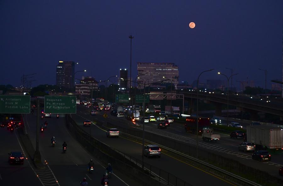 JAKARTA, Aug. 20 (Xinhua) -- People enjoy the beauty of a full moon, the first of the year's four consecutive supermoons in Jakarta, Indonesia, even with naked eyes.
