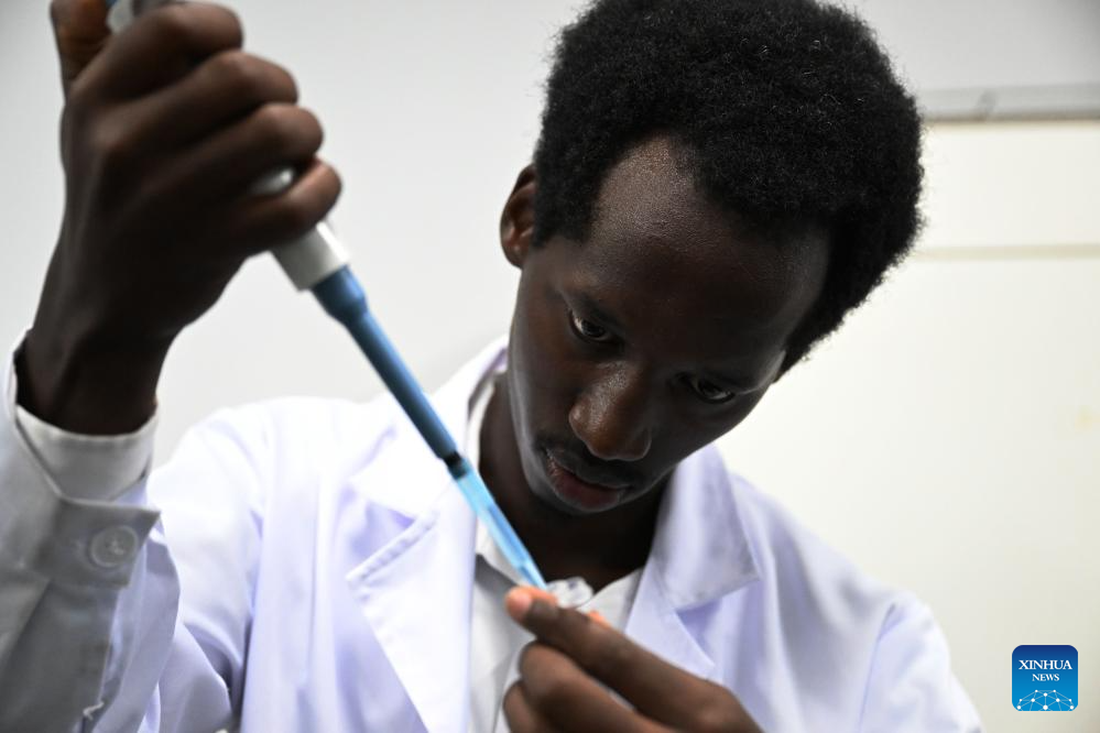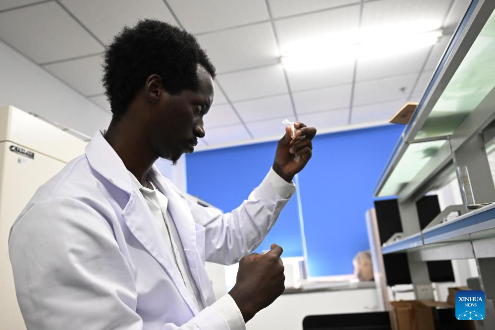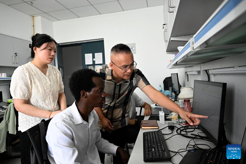 Gatera does research work at laboratory of Anhui Agricultural University in Hefei, east China's Anhui Province, Aug. 13, 2024. (Xinhua/Huang Bohan)