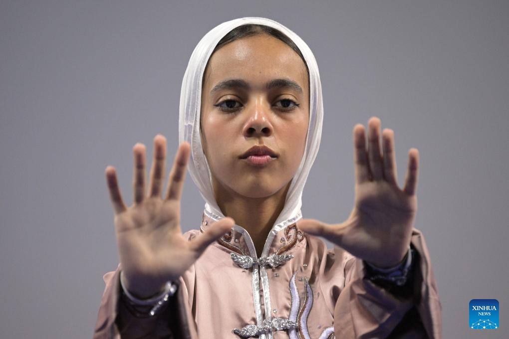 Sama Mohammed Sayed Saad of Egypt competes in the Women's Yang Style Taijiquan (40 Movements) category at the 4th World Taijiquan Championships in Singapore, Aug. 27, 2024. (Photo by Then Chih Wey/Xinhua)