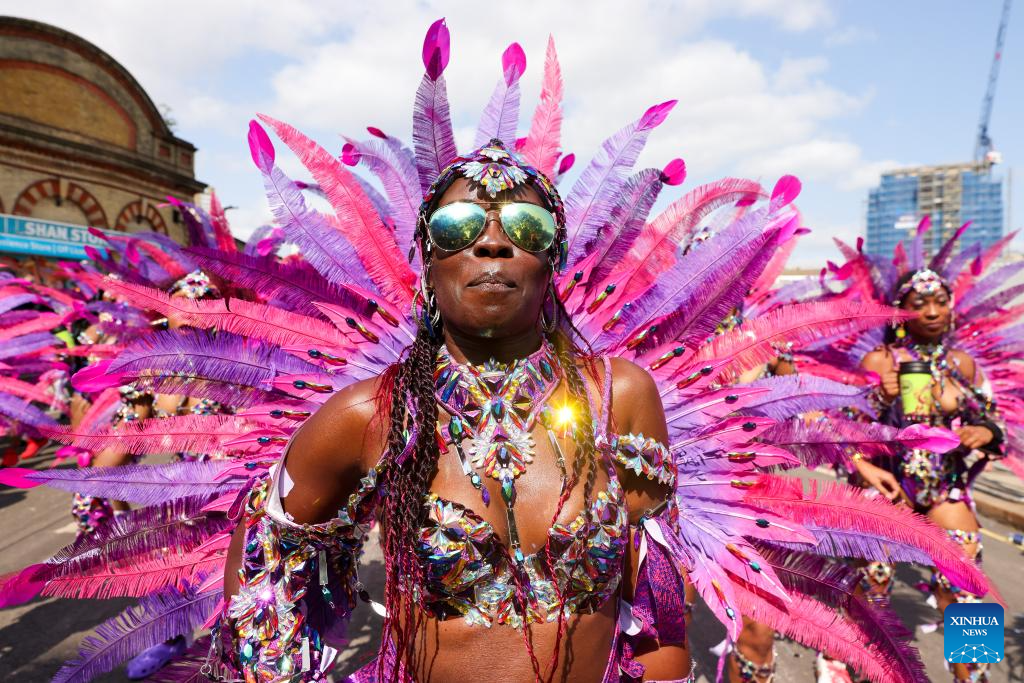 Performers participate in Notting Hill Carnival in London, Britain, on Aug. 26, 2024. Originated in the 1960s, the carnival is a way for Afro-Caribbean communities to celebrate their cultures and traditions. (Xinhua)