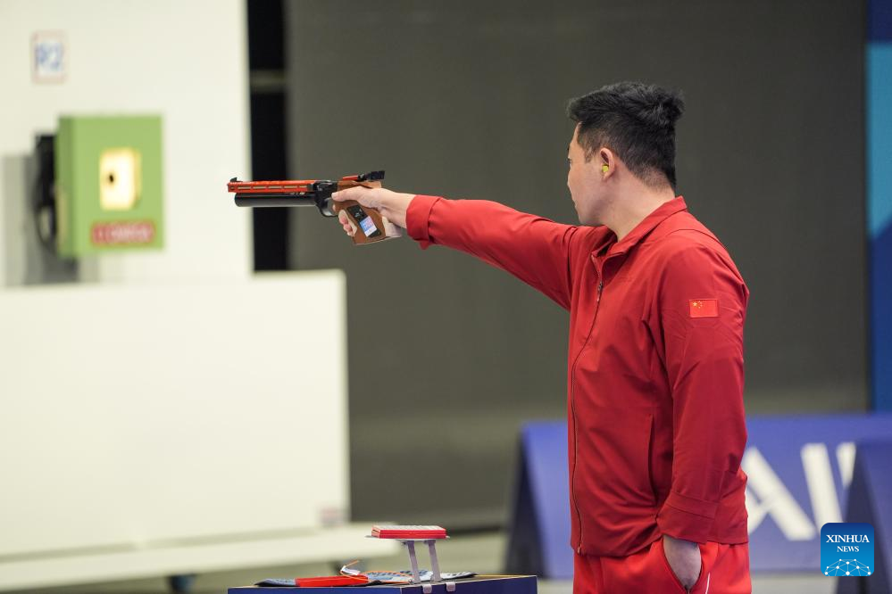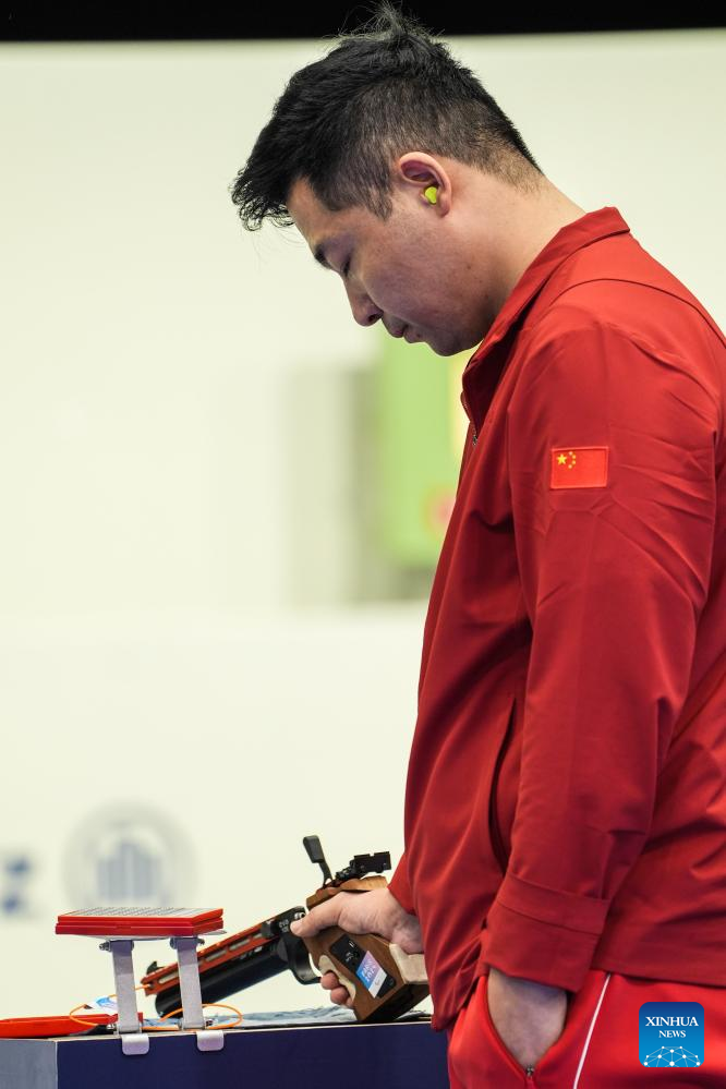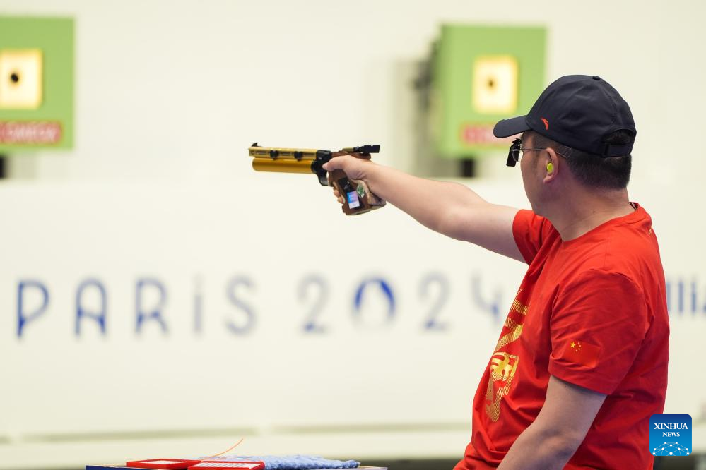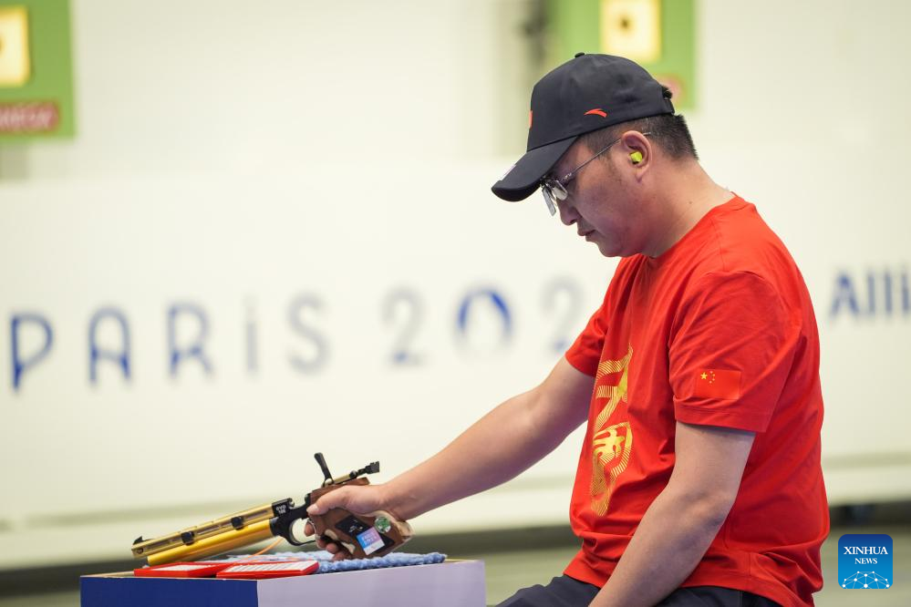 Lou Xiaolong of China competes during the men's 10m air pistol P1-SH1 final of shooting para sport at the Paris 2024 Paralympic Games in Chateauroux, Aug. 30, 2024. (Xinhua/Peng Ziyang)