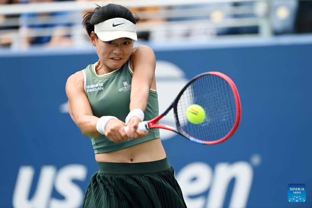 Wang Yafan competes during the women's singles third round match between Wang Yafan of China and Victoria Azarenka of Belarus at the 2024 US Open tennis championships in New York, the United States, on Aug. 30, 2024. (Xinhua/Li Rui)