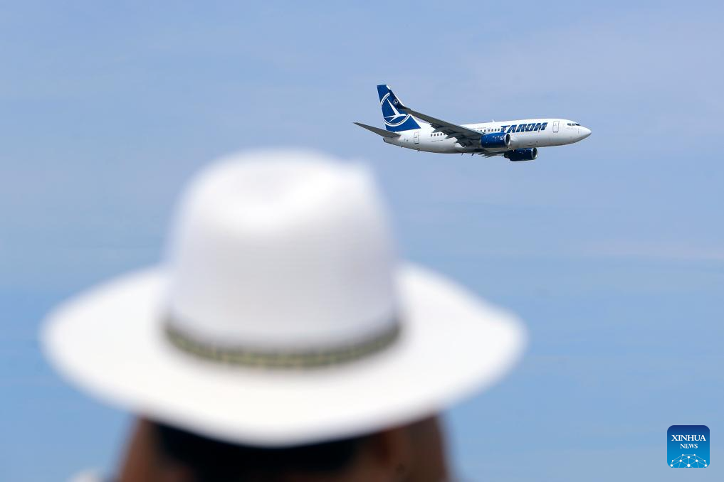 A Boeing 737 of Romanian national airline Tarom performs during the Bucharest International Air Show in Bucharest, Romania, on Aug. 31, 2024. (Photo by Cristian Cristel/Xinhua)
