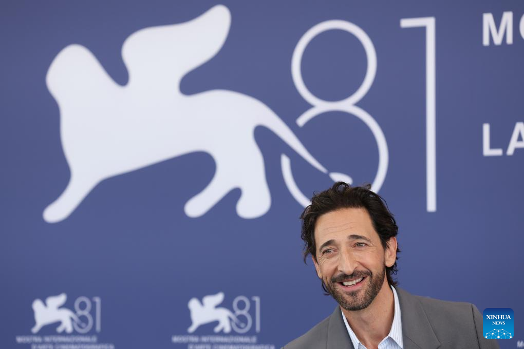 Actor Adrien Brody of the film "The Brutalist" poses for the photocall during the 81st International Venice Film Festival in Venice, Italy, Sept. 1, 2024. (Xinhua/Li Jing)