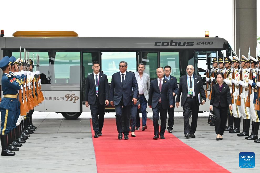 Moroccan Prime Minister Aziz Akhannouch arrives for the 2024 Summit of the Forum on China-Africa Cooperation (FOCAC) in Beijing, capital of China, Sept. 4, 2024. (Xinhua/Li Xin)