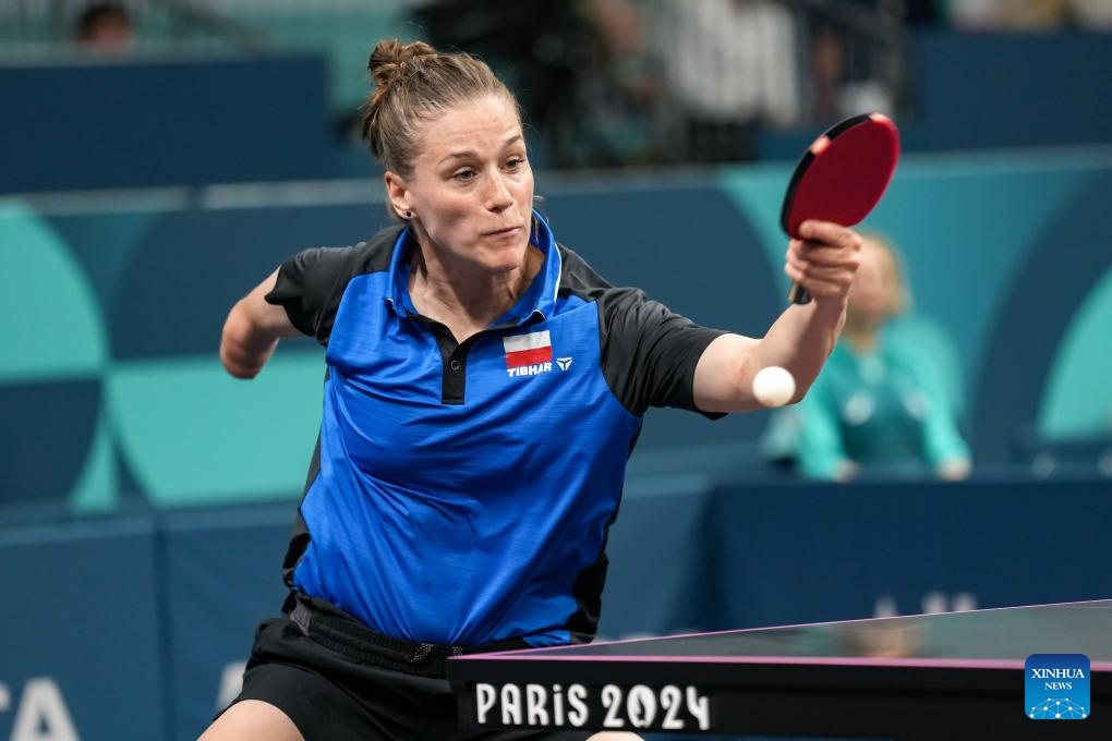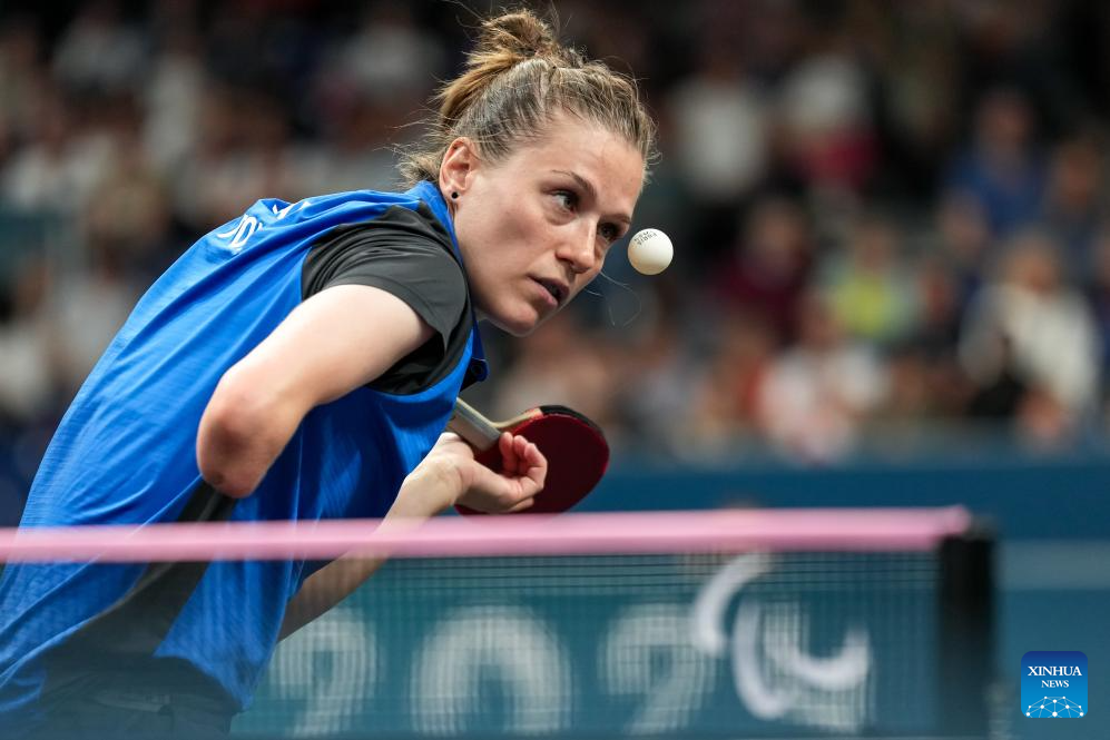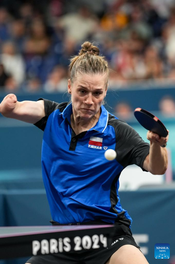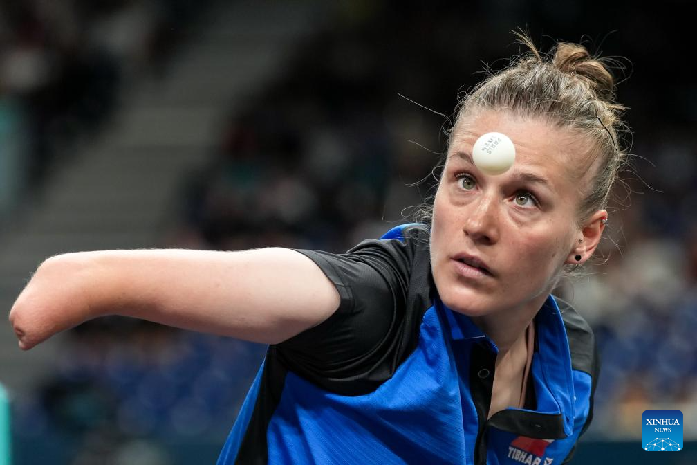 Natalia Partyka of Poland competes during the Para Table Tennis women's singles WS10 final against Yang Qian of Australia at the Paris 2024 Paralympic Games in Paris, France, Sept. 4, 2024. (Xinhua/Zhang Cheng)