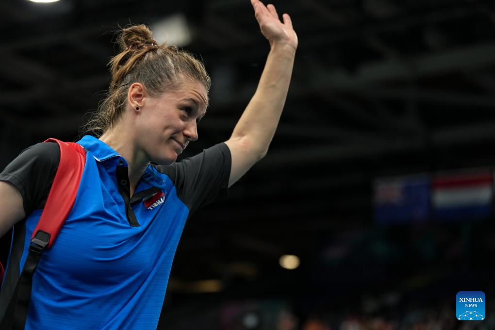 Natalia Partyka of Poland waves to audience after the Para Table Tennis women's singles WS10 final against Yang Qian of Australia at the Paris 2024 Paralympic Games in Paris, France, Sept. 4, 2024. (Xinhua/Zhang Cheng)