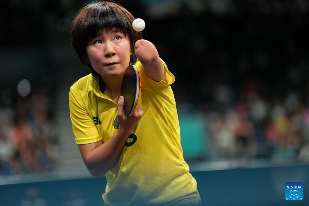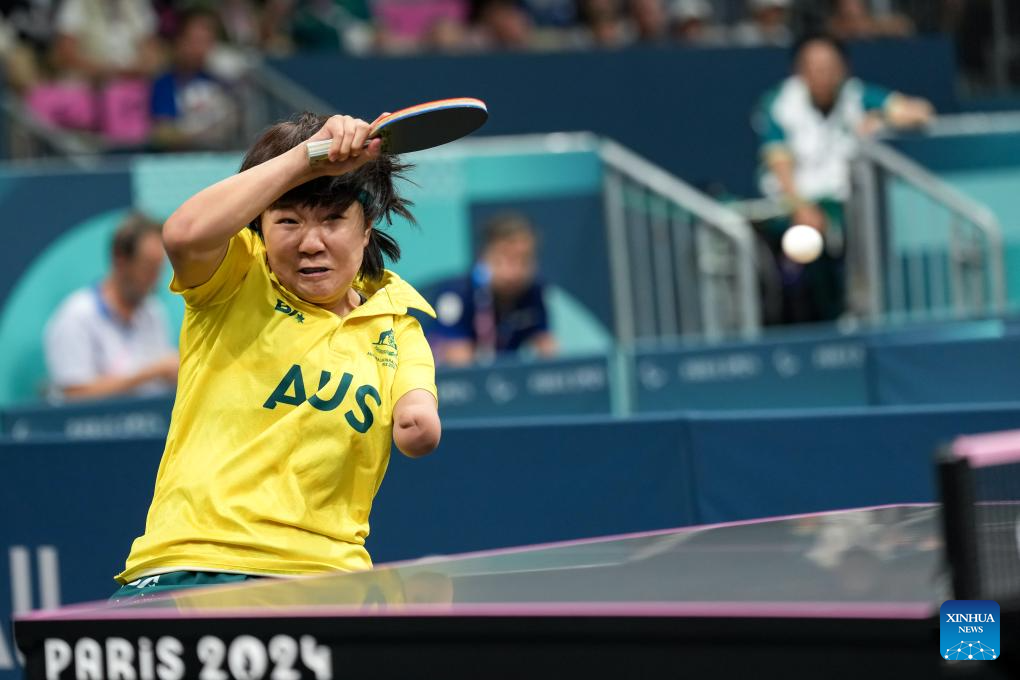 Yang Qian of Australia competes during the Para Table Tennis women's singles WS10 final against Natalia Partyka of Poland at the Paris 2024 Paralympic Games in Paris, France, Sept. 4, 2024. (Xinhua/Zhang Cheng)