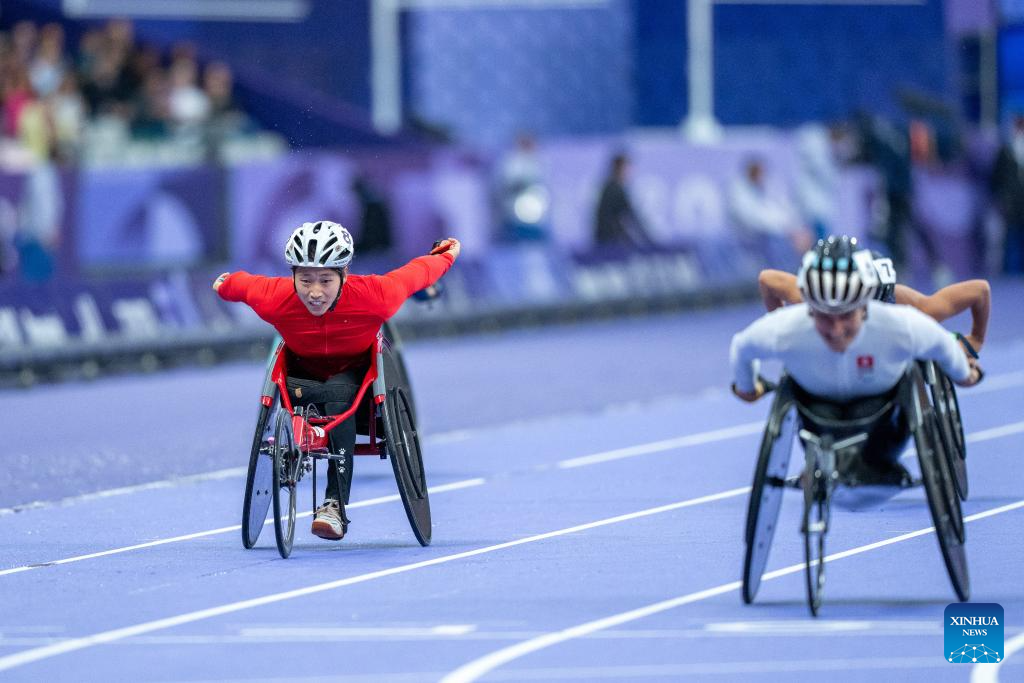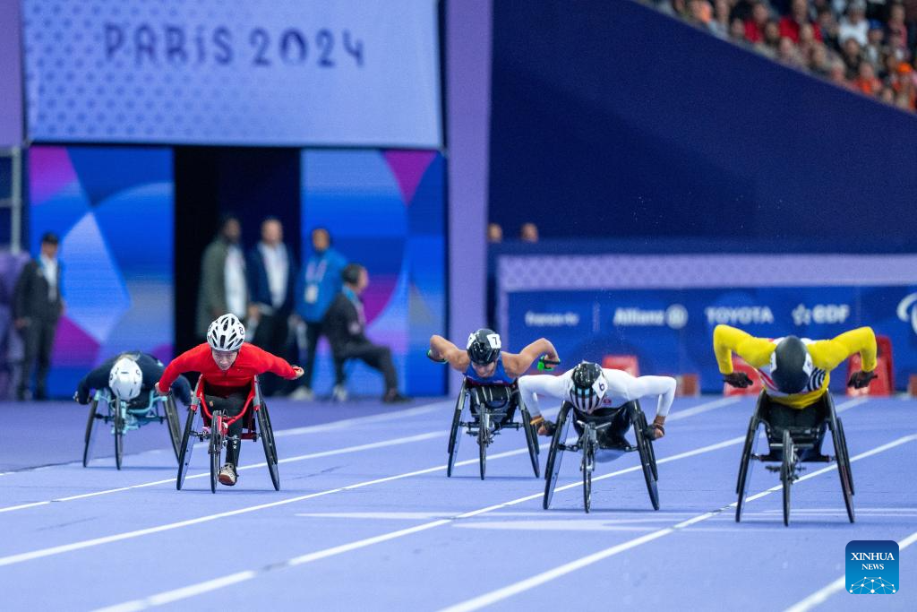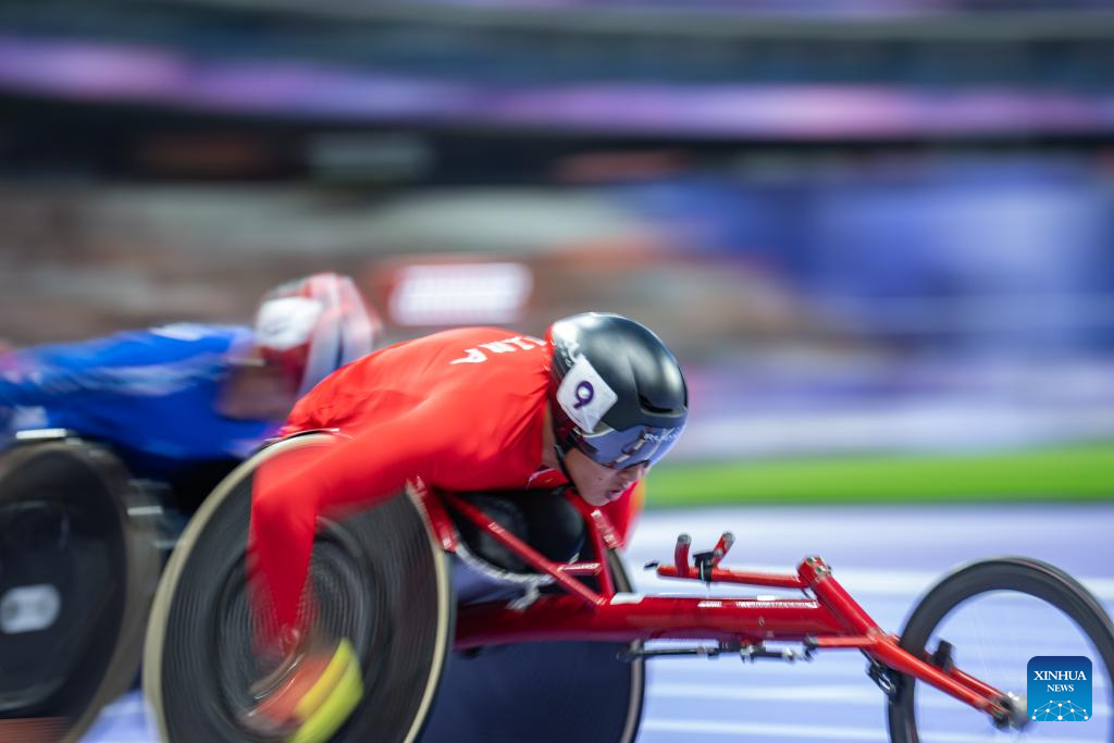 Athlete compete during the women's 400m T54 Final of Para Athletics at the Paris 2024 Paralympic Games in Paris, France, Sept. 5, 2024. (Xinhua/Huang Wei)