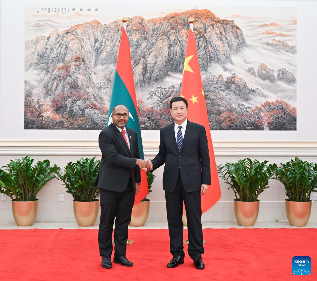 During the meeting with Ihusan, Wang said that China is willing to work with the Maldives to implement the important consensus reached by the leaders of the two countries, deepen cooperation on combating cross-border crimes and law-enforcement capacity building, and effectively protect the safety of the personnel, institutions and projects in each other's countries.
