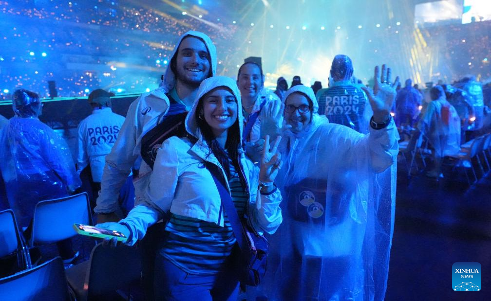 Volunteers watch the closing ceremony of the Paris 2024 Paralympic Games in Paris, France, Sept. 8, 2024. (Xinhua/Cai Yang)
