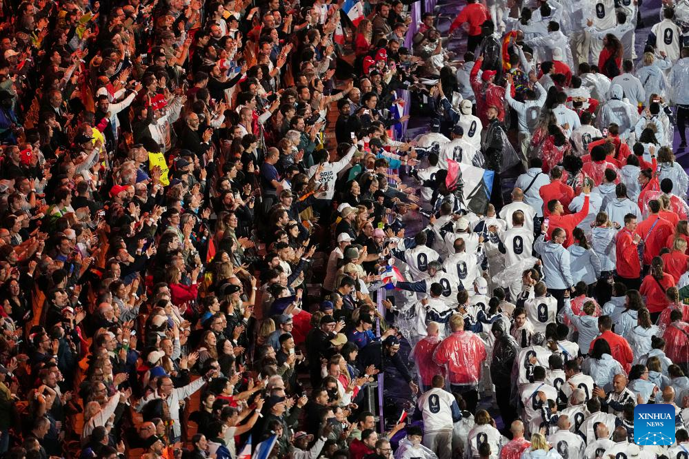 Athletes interact with spectators during the closing ceremony of the Paris 2024 Paralympic Games in Paris, France, Sept. 8, 2024. (Xinhua/Xiong Qi)