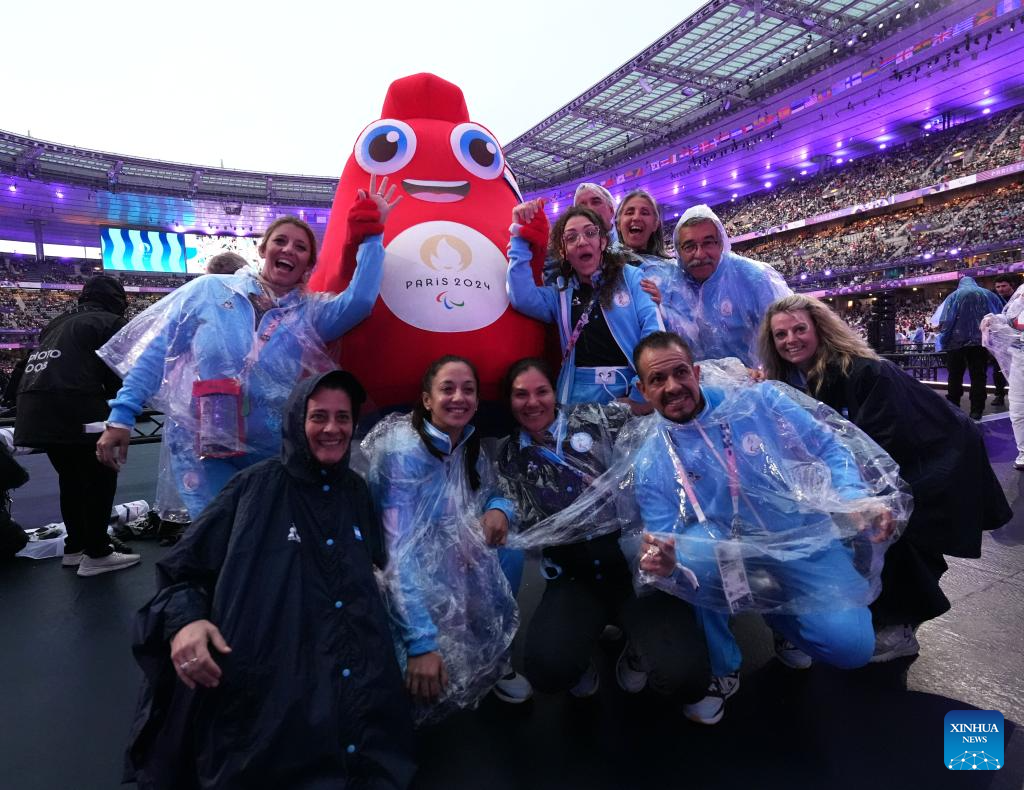 Members of the delegation of China attend the closing ceremony of the Paris 2024 Paralympic Games in Paris, France, Sept. 8, 2024. (Xinhua/Cai Yang)