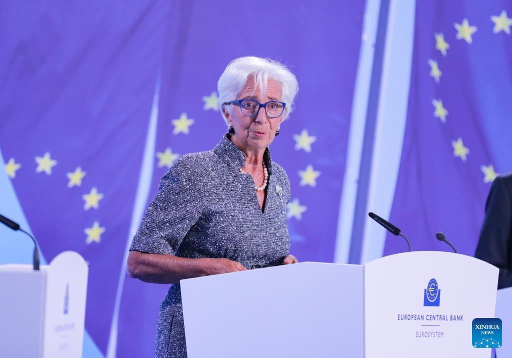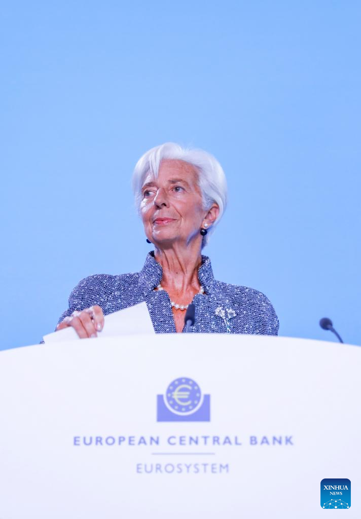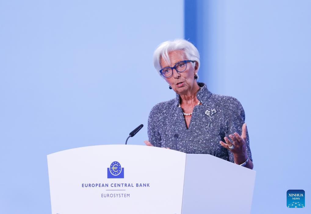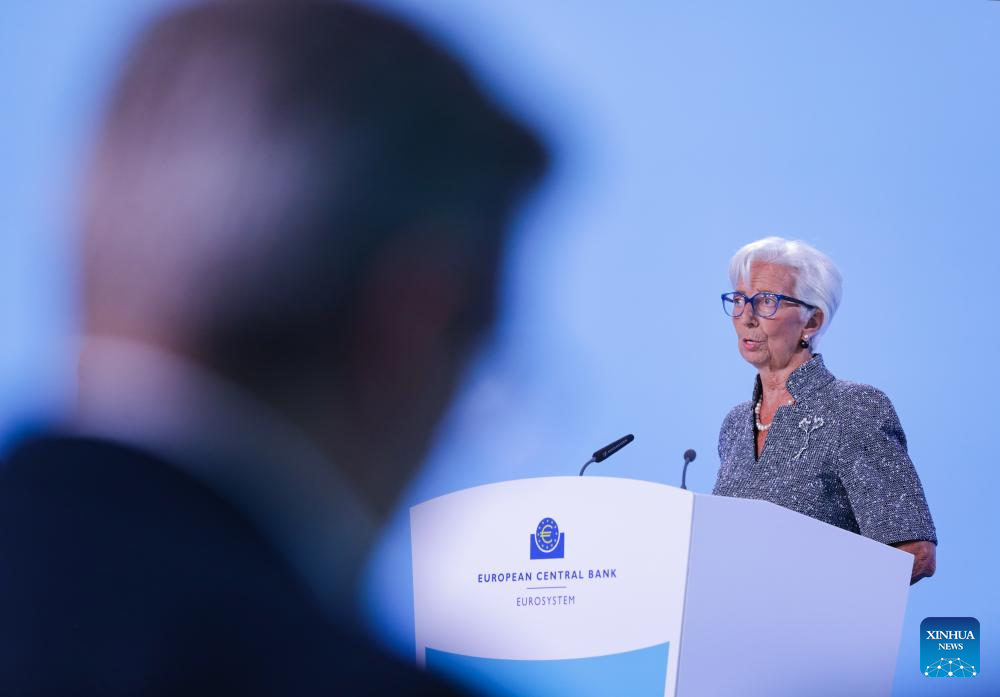 European Central Bank (ECB) President Christine Lagarde attends a press conference at the ECB headquarters in Frankfurt, Germany, Sept. 12, 2024. The ECB on Thursday announced it would cut key interest rates again, marking its second rate reduction this year following a move in June, with no indication of the future rate path. (Xinhua/Zhang Fan)