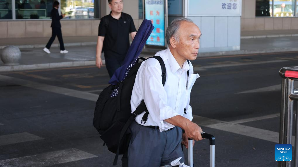 A member of a delegation of descendants of Japanese invaders in China during World War II arrives in Changchun, capital of northeast China's Jilin Province, Sept. 12, 2024. Nine Japanese citizens, all of whom are descendants of Japanese invaders in China during World War II, on Thursday began a trip of confession and apology in China.