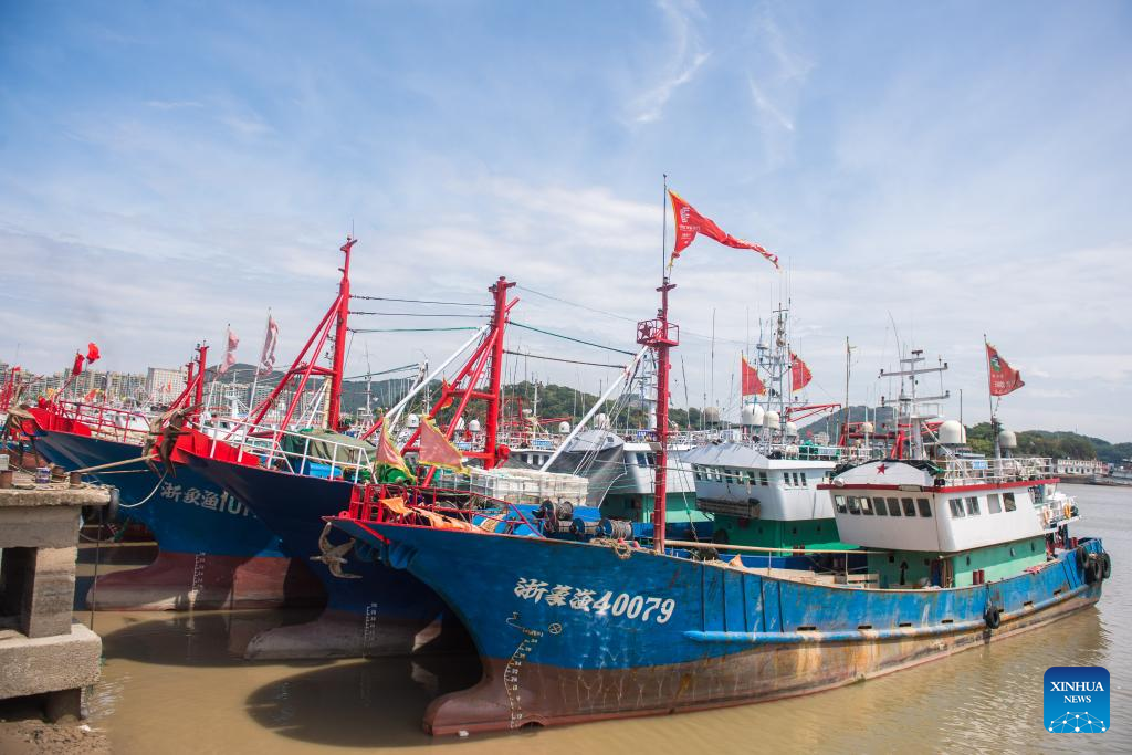 Fishing boats are berthed at a port in Xiangshan County, east China's Zhejiang Province, Sept. 15, 2024.