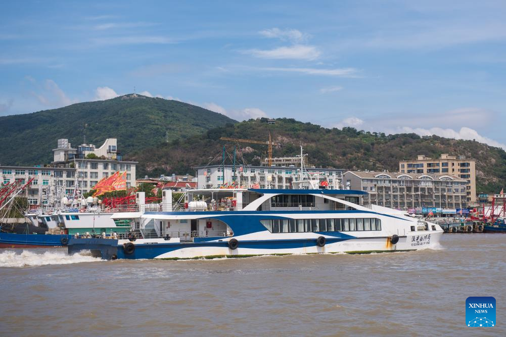 A cruise ship sails to a fishing port in Xiangshan County, east China's Zhejiang Province, Sept. 15, 2024.
