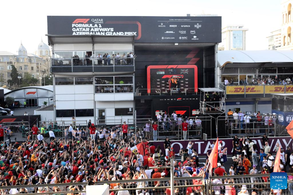 This photo taken on Sept. 15, 2024 shows the awarding ceremony for the Formula One Azerbaijan Grand Prix in Baku, Azerbaijan. (Photo by Tofik Babayev/Xinhua)