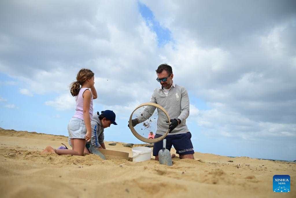 Volunteers collect litter on the beach of Golden Bay in Mellieha, Malta, Sept. 14, 2024. Beach cleanup events were held on Saturday in Malta. (Photo by Jonathan Borg/Xinhua)
