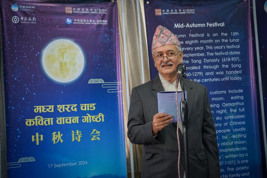 KATHMANDU, Sept. 18 (Xinhua) -- A poetry reading was held in the Nepali captial on Tuesday on the occasion of the traditional Chinese Mid-Autumn Festival.