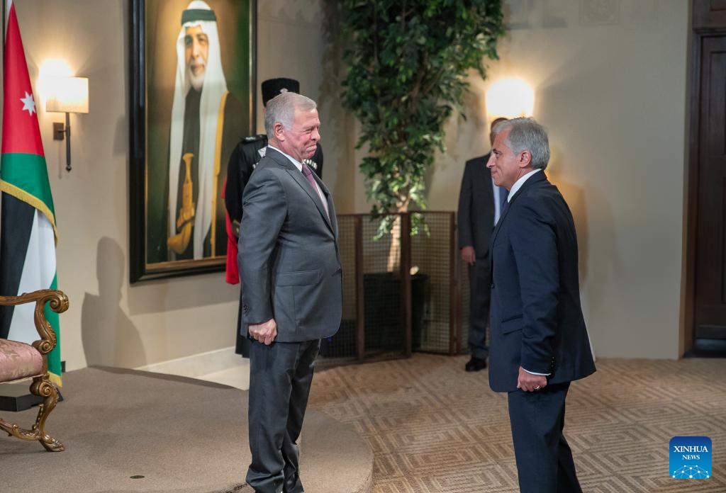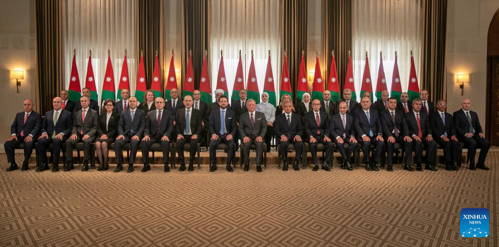 AMMAN, Sept. 18 (Xinhua) -- Jordan's new Prime Minister Jaafar Hassan and members of his cabinet were sworn in on Wednesday before King Abdullah II, state-run Petra news agency reported.