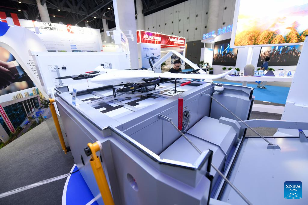 This photo taken on Sept. 20, 2024 shows a hangar platform for unmanned aerial vehicles (UAV) displayed at the 2024 Chengdu International Low-altitude Equipment and Services Expo in Chengdu, southwest China's Sichuan Province. The 2024 China (Chengdu) International Low-altitude Economic Partnership Conference & 2024 Chengdu International Low-altitude Equipment and Services Expo is held here from Sept. 19 to 21, showcasing cutting-edge technologies and new products in low-altitude economy. (Xinhua/Tang Wenhao)