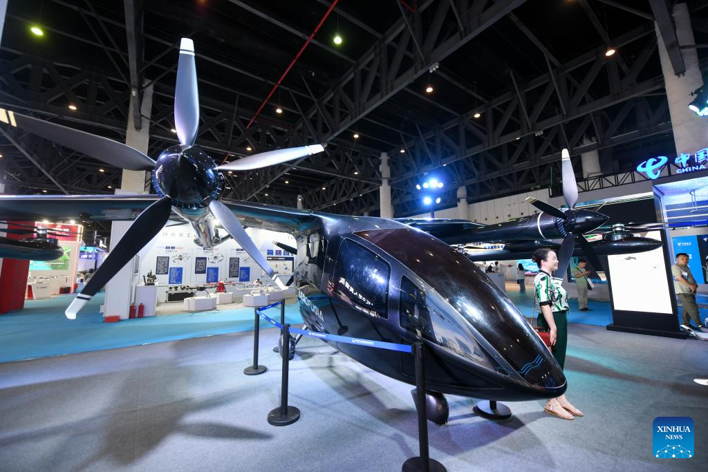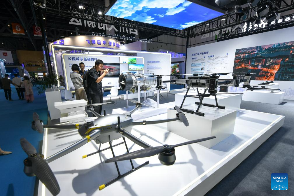 This photo taken on Sept. 20, 2024 shows a scene of the 2024 Chengdu International Low-altitude Equipment and Services Expo in Chengdu, southwest China's Sichuan Province. The 2024 China (Chengdu) International Low-altitude Economic Partnership Conference & 2024 Chengdu International Low-altitude Equipment and Services Expo is held here from Sept. 19 to 21, showcasing cutting-edge technologies and new products in low-altitude economy. (Xinhua/Tang Wenhao)