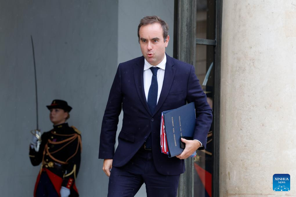 French Defense Minister Sebastien Lecornu arrives for the first cabinet meeting of the new government at the Elysee Palace in Paris, France, Sept. 23, 2024.