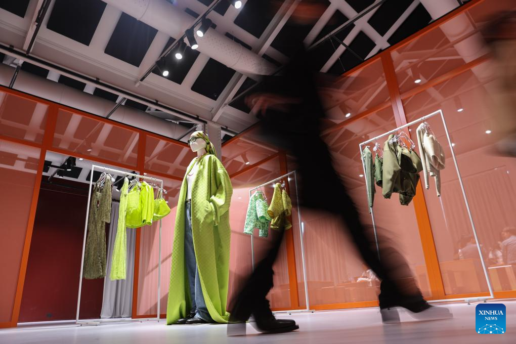 This photo shows creations of Gucci women's Spring/Summer 2025 collections at Gucci's Resee event during Milan Fashion Week in Milan, Italy, Sept. 21, 2024. (Xinhua/Li Jing)