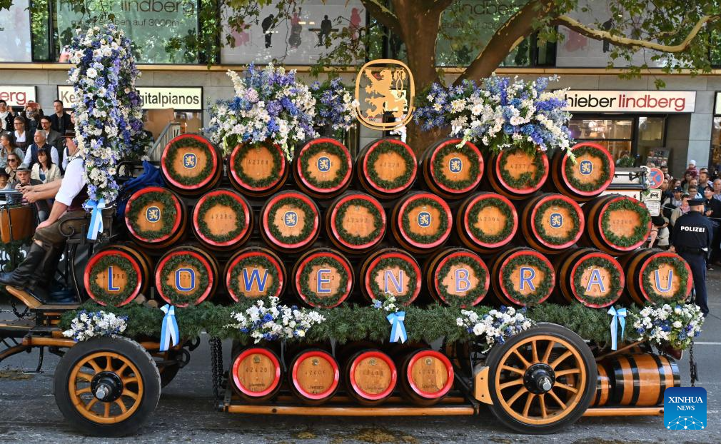 The 189th Oktoberfest, one of the largest folk festivals in Germany, opened on Sept. 21 in Munich, with mayor Dieter Reiter tapping the first barrel of beer as a tradition. This year's festival will last until Oct. 6. (Xinhua/Ren Pengfei)
