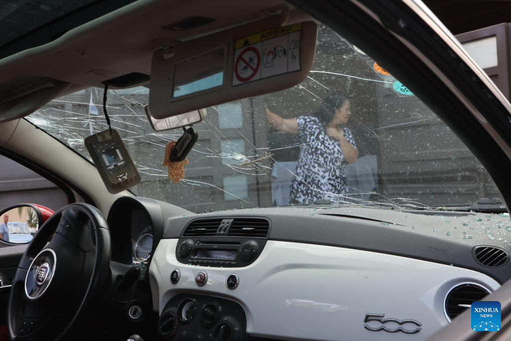 This photo taken on Sept. 22, 2024 shows a car damaged in a rocket attack from Lebanon, in Kiryat Bialik, northern Israel.