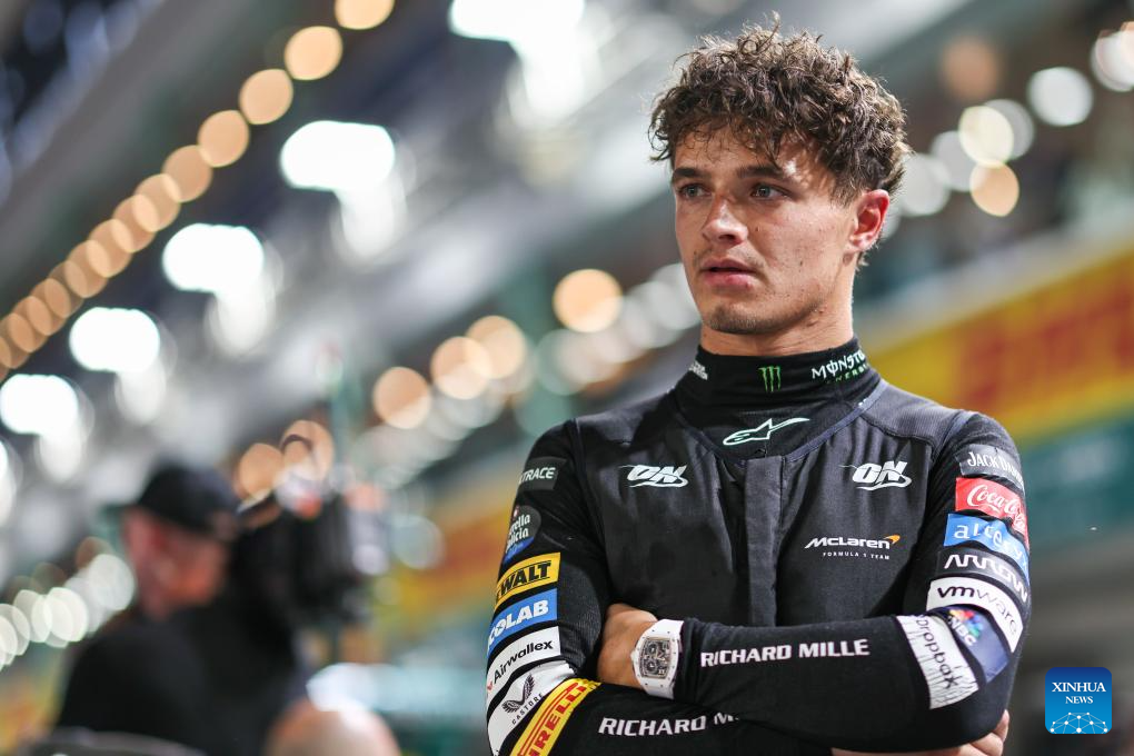 McLaren's British driver Lando Norris is seen before the Formula 1 Singapore Grand Prix night race at Marina Bay Street Circuit, Singapore, Sept. 22, 2024. (Photo by Qian Jun/Xinhua)