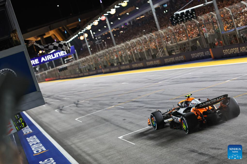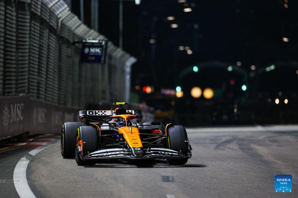 McLaren's British driver Lando Norris competes during the Formula 1 Singapore Grand Prix night race at Marina Bay Street Circuit, Singapore, Sept. 22, 2024. (Photo by Qian Jun/Xinhua)
