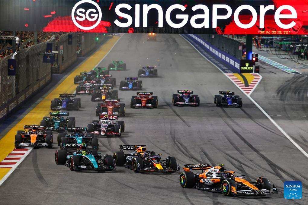 Drivers start during the Formula 1 Singapore Grand Prix night race at Marina Bay Street Circuit, Singapore, Sept. 22, 2024. (Photo by Qian Jun/Xinhua)