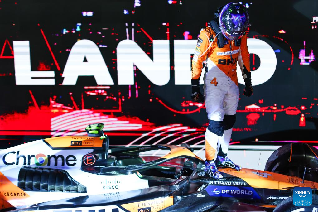 McLaren's British driver Lando Norris reacts after the Formula 1 Singapore Grand Prix night race at Marina Bay Street Circuit, Singapore, Sept. 22, 2024. (Photo by Qian Jun/Xinhua)