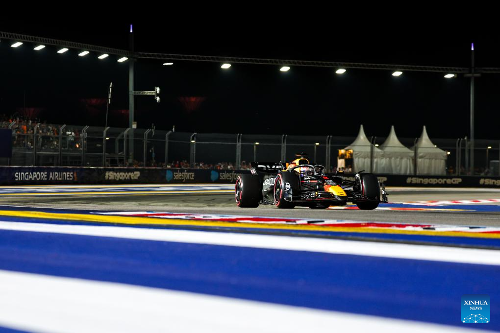 Red Bull's Dutch driver Max Verstappen competes during the Formula 1 Singapore Grand Prix night race at Marina Bay Street Circuit, Singapore, Sept. 22, 2024. (Photo by Qian Jun/Xinhua)