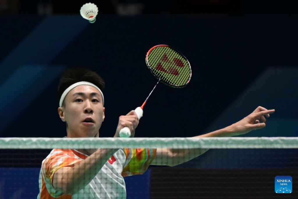 Liu Liang of China competes during the men's singles qualification first round match between Liu Liang of China and Chan Yin Chak of China's Hongkong at Macao Open Badminton 2024 in Macao, south China, Sept. 24, 2024. (Xinhua/Cheong Kam Ka)