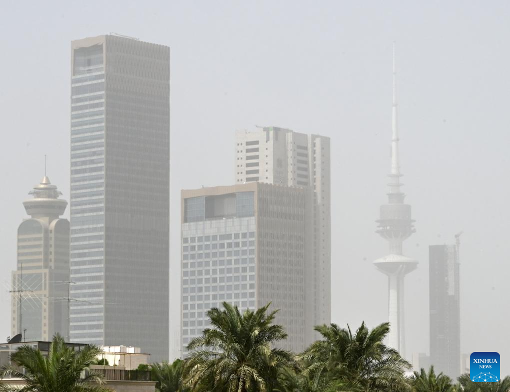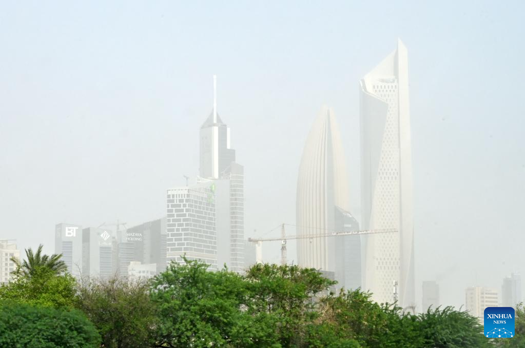 This photo taken on Sept. 26, 2024 shows buildings in a strong dust storm in Kuwait City, Kuwait. (Photo by Asad/Xinhua)