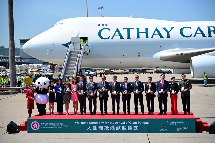 "We are more than happy to welcome the pair of energetic giant pandas at this joyful time," said Chan Kwok-ki, chief secretary for administration of the HKSAR government, at a welcome ceremony at Hong Kong International Airport.